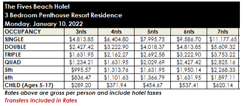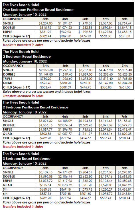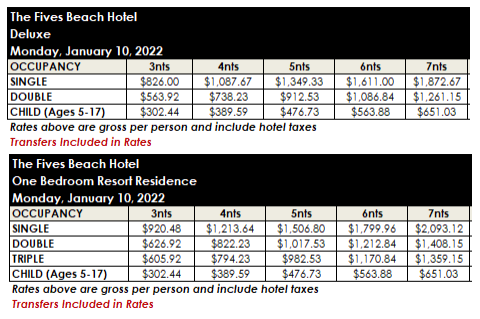 ROOM RATES FOR THE FIVES BEACH HOTEL & RESIDENCES